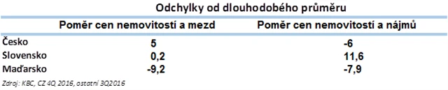 České nemovitosti působí draze ve srovnání s průměrnými příjmy lidí. Vývoj cen v uplynulém roce výrazně překonal dynamiku růstu mezd, poměr cen a platů tak byl na konci roku 2016 zhruba 5 % nad dlouhodobým průměrem.