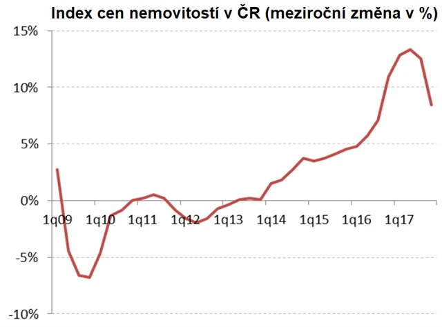 Třetí čtvrtletí již naznačilo změnu, když růst HPI po letech poprvé zpomalil, byť jen mírně (na 12,5 %). Signál ochlazování ale potvrdilo poslední loňské čtvrtletí, v němž HPI vzrostl jen zmíněným tempem 8,4 %. Odpovídá to i dalším údajům, jako jsou zpomalující růst objemu hypoték a zrychlující růst hodnoty stavebních povolení a počtu zahájených staveb bytů.
