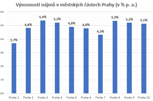 Podle poradenské společnosti Deloitte si nyní lidé kupují na investici (tedy nikoli pro vlastní bydlení) zhruba 30-40 % nových bytů v developerských projektech. Na první pohled se může zdát, že v Praze je pro investiční byt nejatraktivnější centrum města (Praha 1), kde dosahuje nájemné nejvyšších hodnot. Zde však reálný výnos srážejí vysoké kupní ceny bytů, především v rekonstruovaných činžovních domech. Mnohem zajímavější výnosy (i přes 5 %) umožňují nemovitosti na Praze 3, 4, 8, 9 nebo 10.