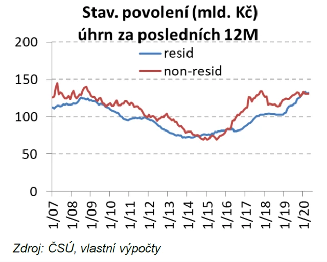 V samotném dubnu se produkce pozemního stavitelství (kam patří i bytová výstavba) podle dat ČSÚ snížila – zjevně v souvislosti s koronavirovým hospodářským šokem – meziročně o 10,5 %. Dopad byl ale soustředěn výhradně na dokončené byty (počet klesl meziročně o 32,5 %), počet zahájených staveb naopak o 1,5 % vzrostl.