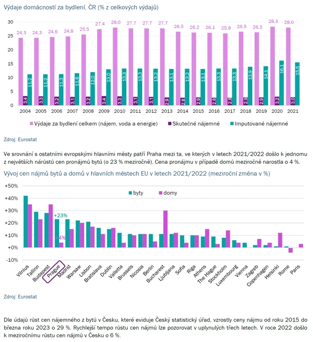 - Ceny nájmu vzrostly od roku 2015 do března 2023 o 29 %. V loňském roce došlo k meziročnímu růstu nájmů v ČR o 6 %.