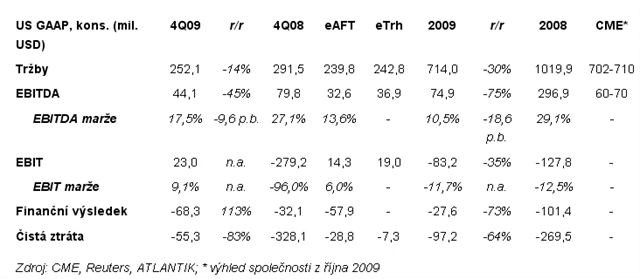 Za celý rok 2009 tržby poklesly o 30 % r/r na 714 mil. USD a EBITDA o 75 % r/r na 75 mil. USD, čímž byl překonán výhled společnosti z října 2009 (tržby 702-710 mil. USD a EBITDA 60-70 mil. USD). Naše očekávání bylo 702 mil. USD (tržby) a 63 mil. USD (EBITDA).