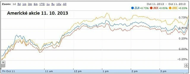 Spekulace, že zákonodárci pokročili v jednání o vyřešení rozpočtové krize v USA, vyhnaly americké akcie nejvýše od září. Indexy tak vymazaly pokles, kterým si prošly od 1. října, kdy bylo zastaveno financování vlády.