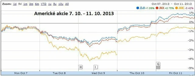 - Investoři pozitivně vnímají rýsující se dohodu o zvýšení dluhového stropu. Mávli proto rukou i nad nečekaně špatnou statistikou žádostí o podporu v nezaměstnanosti, kterou přisoudili přerušení činnosti vlády a technickým potížím úřadu práce v Kalifornii.