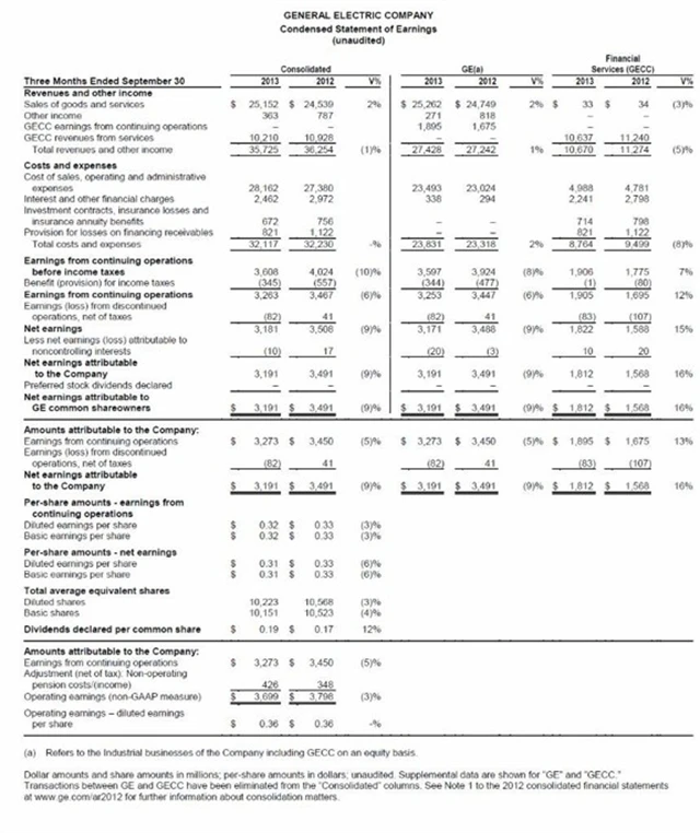 Objednávky vzrostly o 19 % na 25,7 mld. USD. Růst ziskovosti v průmyslové divizi byl 11 % a ve finanční GE Capital 13 %.