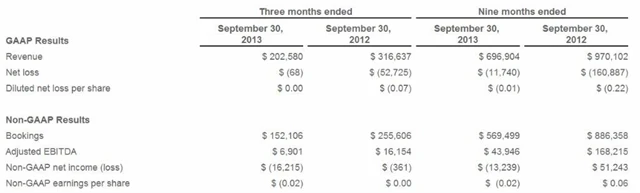 Herní vývojář Zynga vykázal za třetí čtvrtletí upravenou ztrátu na akcii 0,02 USD (odhad: ztráta 0,04 USD) při tržbách 202,58 milionu USD (odhad: 189,6 milionu USD, loni: 316,6 milionu USD). Akcie na lepší než očekávané výsledky v after-marketu reagovaly růstem o 17 %.