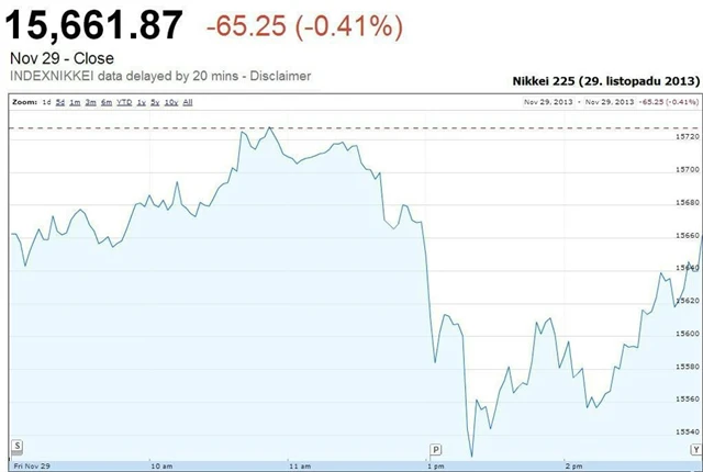 Čínský Shanghai Composite v pátek uzavřel prakticky na nule se ziskem 0,05 %, za celý listopad si však polepšil o více než tři procenta. Hongkongský Hang Seng připsal 0,39 % a vyšplhal se tak na nejvyšší hodnotu od dubna 2011 (23 881,29 bodu). Japonský Nikkei naopak 0,41 % odepsal, mírně ztratil i jihokorejský Kospi (-0,04 %) a australský S&P/ASX 200 odevzdal 0,27 % kvůli propadu ceny akcií společnosti GrainCorp.