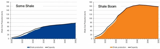Velkoobchodní ceny plynu by v případě břidlicového boomu klesly v EU do roku 2050 proti situaci bez těžby z břidlicových ložisek o 14 %, což by znamenalo úsporu 28 miliard eur ročně. Ceny elektřiny by se podle studie snížily o 8 % a celková energetická úspora za toto období by dosáhla až 1,7 bilionu eur. Z toho domácnosti by na energii ušetřily celkem 540 miliard eur.