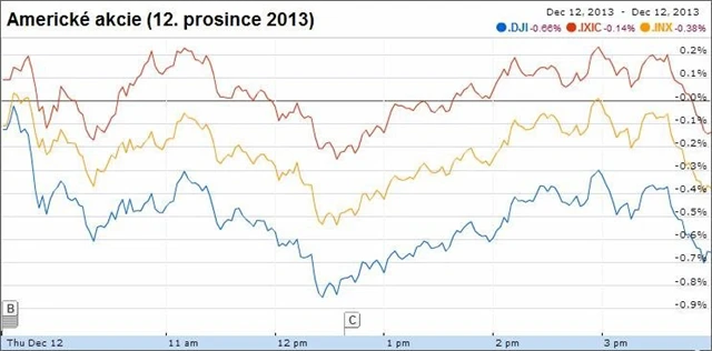 Ceny amerických akcií ve čtvrtek klesaly. Investoři zvažovali smíšená makrodata a jejich možný dopad na rozhodnutí FOMC o kvantitativním uvolňování na prosincovém zasedání.