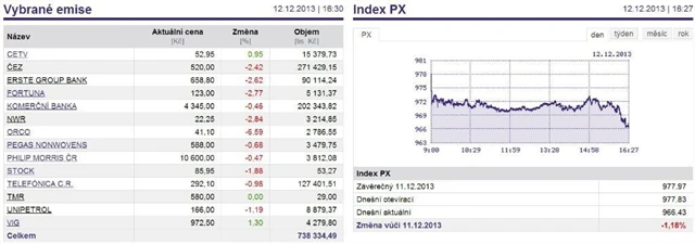 Index PX ve čtvrtek odepsal 1,18 % na 966,43 bodu.