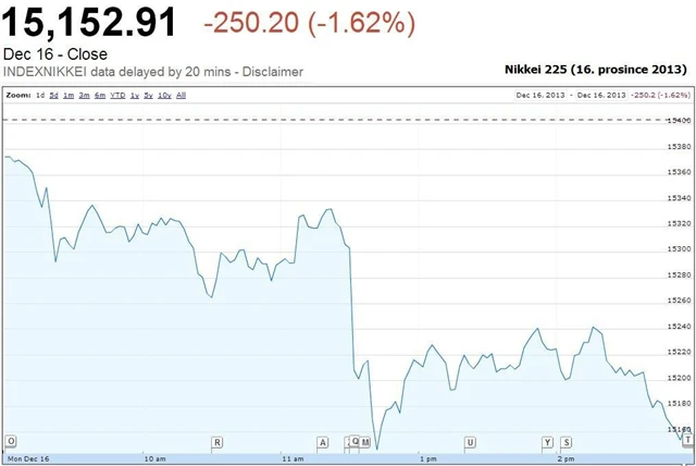 Nikkei odepsal 1,62 %, čínský Shanghai Composite 1,60 % a hongkongský Hang Seng 0,43 %. Australský S&P/ASX 200 klesl jen mírně o 0,17 % a jihokorejský Kospi o 0,08 %.