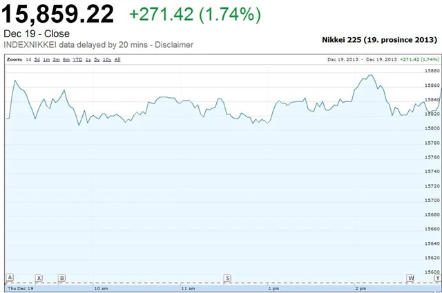 Japonský Nikkei posílil o 1,74 % a uzavřel na šestiletém maximu, čínský Shanghai Composite naopak ztratil 0,95 % a hongkongský Hang Seng 1,58 %. Čínské akcie reagovaly negativně na zprávu centrální banky, která se rozhodla nepumpovat na trhy další likviditu. Čínský úrokový swap vyskočil nejvýše od července letošního roku a dotkl se rekordu.