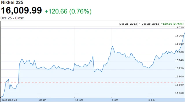 Index japonských akcií Nikkei 225 zakončil středeční obchodování na šestiletém maximu 16 009,99 bodu (+0,76 %). Navázal tak na americkou rally na nové historické rekordy z úterý, navíc japonští drobní investoři nakupují akcie v očekávání změn zdanění.