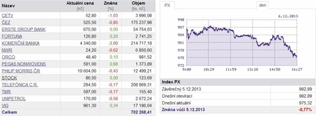 Z velkých emisí skončila pod nulou také Telefónica C.R. Index PX odepsal 0,77 % na 975,32 bodu. Za týden tak pražská burza klesla o více než 5 %.