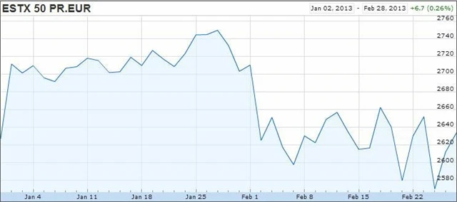 Panevropský index FTSEurofirst 300 vzrostl o procento na 1 176,66 bodu. Smazal tak už většinu ztrát, které utrpěl po volbách v Itálii. Užší index DJ EuroStoxx 50, který sleduje obchodování jen na burzách v eurozóně, přidal 0,8 % na 2 633,55 bodu. Od začátku roku se tak dostal do mírného zisku.