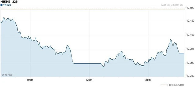 Japonský index Nikkei 225 ztratil 1,26 % na 12 335,96 bodu. Obavy z Evropy neuklidnila ani během dne se zlepšující nálada na amerických trzích.