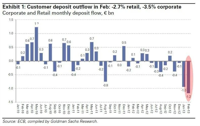 Plán na zdanění vkladů v kyperských bankách byl nečekaný a nikdo, ani politici samotní, ho dopředu nepředvídal. Tak to alespoň prezentují politické špičky i média, protože poslední věc kterou by teď někdo potřeboval, je podezření, že byly velké ryby varovány předem, aby nemusely potupně vybírat své miliardy po 300 eurech denně. Jenže v této rétorice se objevila trhlina - v únoru, kdy eurozóna rostla a Dow Jones se blížil k maximům, kyperští střadatelé totiž záhadně vybrali z bank nejvíce peněz za poslední tři roky.