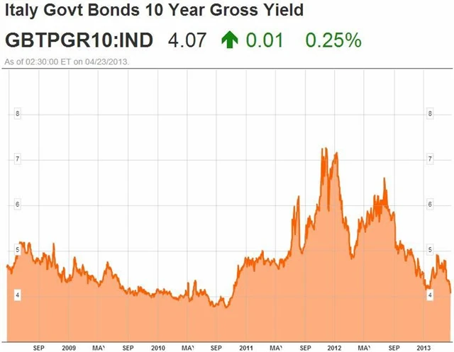 Výnosy italských 10letých dluhopisů se dostaly nejníže od listopadu 2010, krátce dokonce pod 4 %
