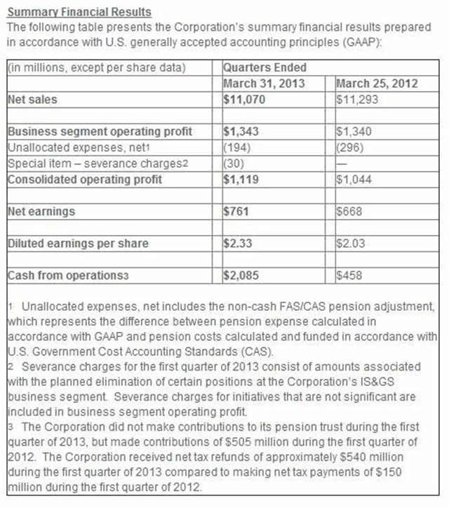 Čistý zisk amerického zbrojního koncernu Lockheed Martin v prvním čtvrtletí nečekaně výrazně stoupl na 761 milionů dolarů, 14 % nad úroveň stejného období loňského roku.