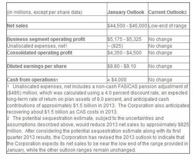 Další vývoj budou nejvíce ovlivňovat automatické výdajové škrty v USA, které jsou účinné od března. Kvůli nim firma počítá s horšími výsledky v dalších čtvrtletích. Odhad celoročního provozního zisku ale nechal Lockheed beze změny.