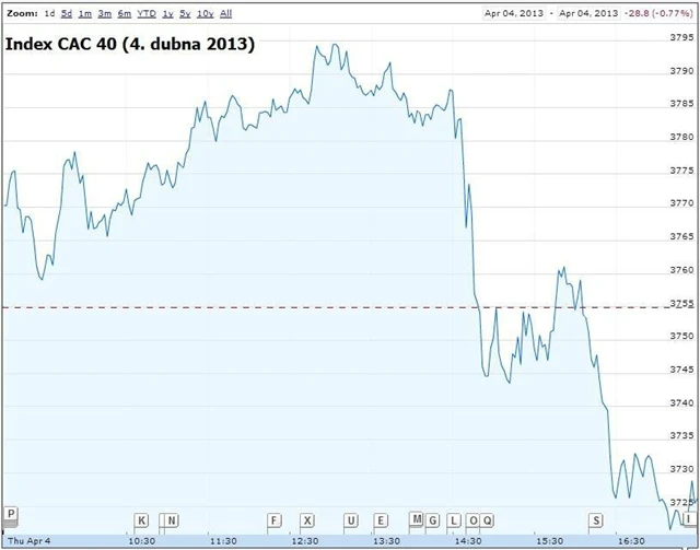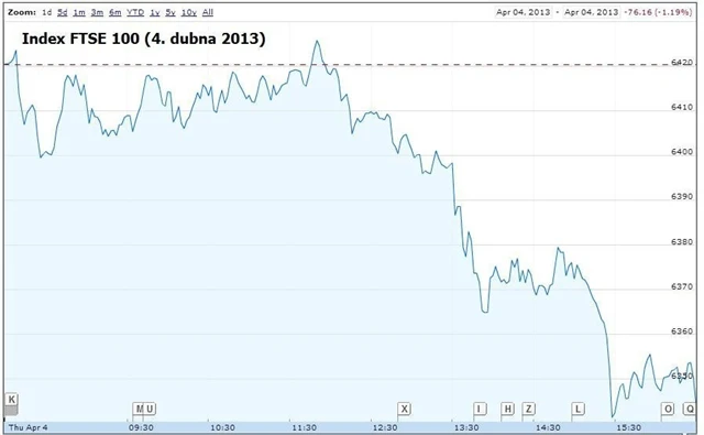 Západoevropské akcie se ve čtvrtek hromadně propadaly. Britský FTSE 100 ztratil 1,19 % a zakončil den na 6 344,12 bodu, francouzský CAC 40 oslabil o 0,77 % na 3 726,16 bodu a německý DAX o 0,73 % na 7 817,39 bodu.