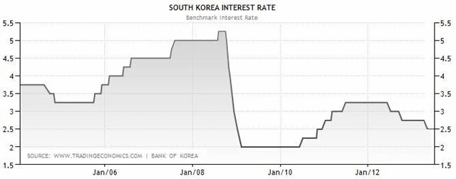 Banku ke snížení sazby vede neuspokojivá kondice průmyslu, ekonomika se nezotavuje tak rychle, jak se očekávalo. V regionu dominuje kvantitativní uvolňování ze strany japonské centrální banky, které oslabuje jen a pomáhá japonským vývozcům. Jižní Korea zareagovala relativně rychle.