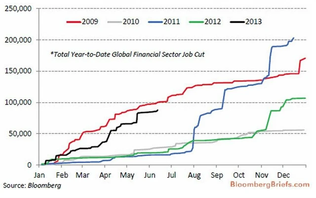 Akciím bankovního sektoru se ve Spojených státech poslední dobou značně daří. Banky posilují a přetékají optimismem. Proč tedy do této chvíle od počátku roku propustily téměř stejný počet zaměstnanců jako po pádu Lehman Brothers?