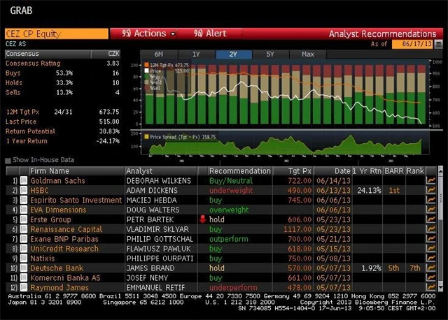 Levná elektřina zlobí ČEZ. Komerční banka snížila cílovou cenu ČEZ z 661 Kč na 498 Kč a Goldman Sachs na 722 Kč.