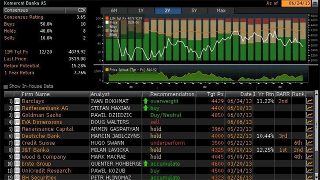 Barclays zvyšuje Komerční bance doporučení na "overweight" z "equalweight"