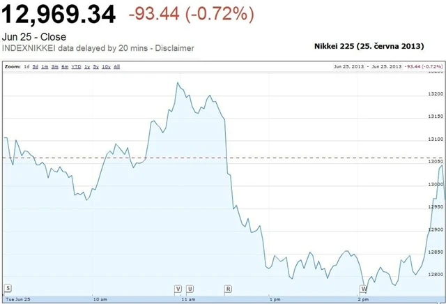 Nikkei odepsal 0,72 %, Shanghai Composite se propadl o více než 2 %, následně však zakončil kolem nuly, hongkongský Hang Seng mírně posiloval, korejský Kospi ztratil 1,02 % a australský S&P/ASX 200 0,28 %.