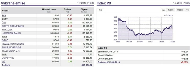 Pražská burza zahájila třetí čtvrtletí v červených číslech