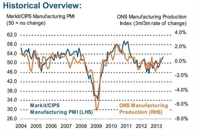 Zpracovatelskému sektoru ve Spojeném království se v červnu dařilo. Nové zakázky i produkce odvětví rostla a ceny vstupů zůstaly nízké. Počet nových firem v sektoru rostl nejrychleji od února 2011 a produkce odvětví nejvíce od dubna 2011. Podmínky na domácím trhu se zlepšily a poptávka po zboží ze zahraničí se zvýšila. Index se už třetí měsíc nachází nad hranicí padesáti bodů.