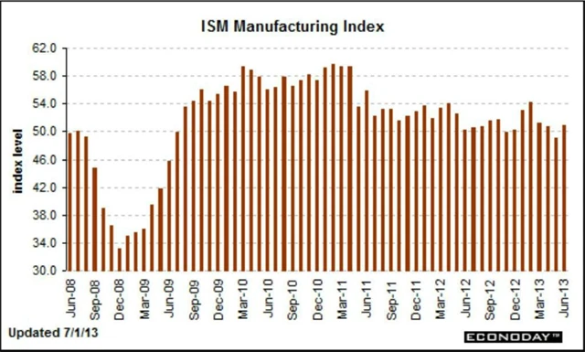 USA: ISM index aktivity ve zpracovatelském sektoru se v červnu vyhoupl na 50,9 bodu ze 49 bodů (odhad: 50,5 bodu)