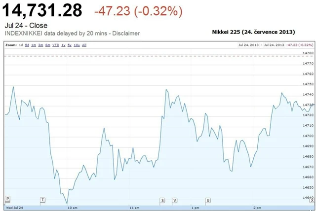 Čínský Shanghai Composite odepsal přes 0,5 %, hongkongský Hang Seng se pohyboval kolem nuly, japonský Nikkei ztratil 0,32 %, zatímco australský S&P/ASX 200 posílil o 0,36 % a korejský Kospi o 0,42 %. Jihokorejská společnost LG Electronics si připsala přes dvě procenta po zveřejnění hospodářských výsledků za druhé čtvrtletí.