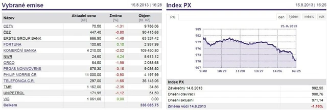 Index PX ve čtvrtek odepsal 1,16 %. Akcie NWR i nadále posilují, zbytek významnějších akcií uzavřel v červených číslech.