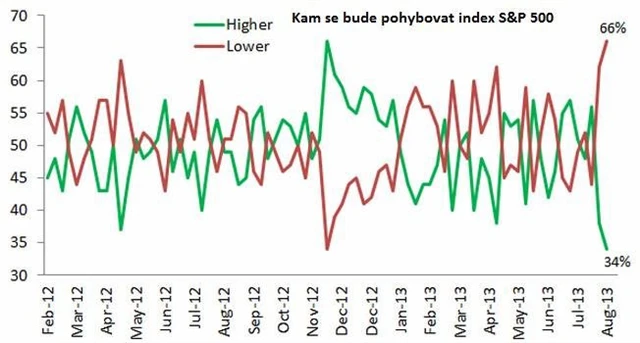 Podle průzkumu společnosti Bespoke Investment Group čeká rekordní počet investorů propad indexu S&P 500 v následujících 30 dnech. Myslí si to 66 % oslovených investorů.