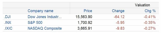 Americké akcie zahajují v červených číslech. Dow -0,41 %, S&P -0,29 %, Nasdaq -0,27 %