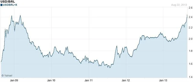 Real v minulých letech podobně jako měny dalších mladých tržních ekonomik sílil. Souviselo to zejména s tím, že centrální banka USA podporovala ekonomiku masivními nákupy dluhopisů, jimiž tlačila dolů dolarové úroky. Investoři tak nakupovali výnosnější aktiva mladých trhů. Od jara ale kapitál z rozvojového světa odtéká zpět k dolarovým aktivům, protože Fed dal najevo, že letos začne svou podpůrnou měnovou politiku omezovat.