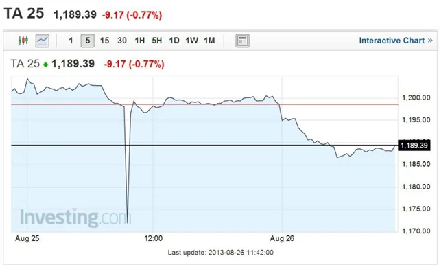 Překlep pracovníka burzy v Tel Avivu v neděli způsobil, že jedna z největších izraelských firem ztratila téměř 100 % své tržní hodnoty a index Tel Aviv 25 se náhle propadl o 2,5 % během pěti minut.