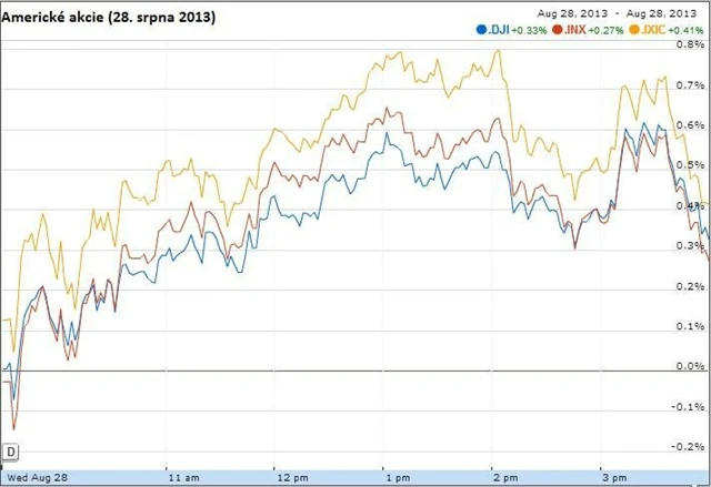 Kromě situace v Sýrii investoři také s obavami vyhlížejí blížící se zasedání FOMC v září, na němž by se mohlo rozhodnout o omezení programu nákupu dluhopisů. Každá špatná zpráva z ekonomiky je proto vnímána jako dobrá, protože by mohla rozhodnutí Fedu odložit. Zprávy z amerického trhu s nemovitostmi investory ve středu právě v tomto směru mírně uklidnily, protože potvrdily předchozí data, která naznačují, že oživení na realitním trhu není tak horké, jak se zdálo. Počet žádostí o hypotéku v týdnu do 23. srpna klesl o 2,5 % a rozjednané prodeje domů v červenci klesly o 1,3 %, o tři desetiny procentního bodu více, než se čekalo. Prodeje starších domů v červenci sice vyskočily nečekaně nahoru, ale realitní makléři se obávají dopadu rostoucích cen domů a hypotečních sazeb. Příliš dobře nešly v červenci na odbyt ani nové domy. Prodej klesl o 13,4 %, zatímco mediánová cena domu meziročně vzrostla o více než 8 %.
