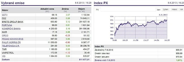 Akciím na pražské burze se ve čtvrtek dařilo. Index PX připsal 1,61 % především díky výraznému zdražení bankovních titulů.