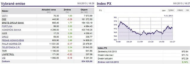 Index PX v pátek posílil o 0,14 % na 972,29 bodu.