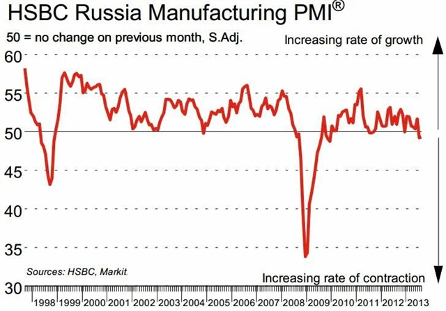 Nové objednávky mírně oživily, ale exportní objednávky stagnovaly a zaměstnanost klesla. Takový byl srpen v ruském průmyslovém sektoru podle průzkumu mezi nákupními manažery. Index mírně vzrostl ze 49,2 bodu v červenci na srpnových 49,4 bodu, stále je ovšem poblíž nejnižších úrovní za poslední čtyři roky.