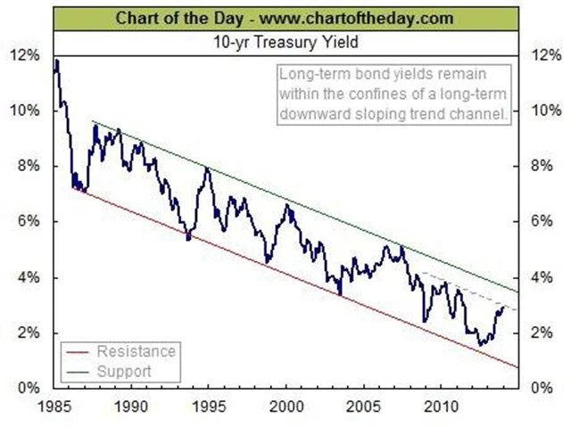 Býčí trh s americkými dluhopisy v posledních dekádách srazil výnosy až na minima hluboko pod 2 % v případě 10letých bondů. Ani růst o zhruba 140 bazických bodů nevymanil výnosy z mnohaletého klesajícího trendu. Pokud by z něj vybočily směrem nahoru, asi i poslední pochybovači by uznali, že na dluhopisovém trhu v USA převzal žezlo medvěd. Lepší stav na dluzích stále závislejší ekonomiky by se o to mohl postarat.