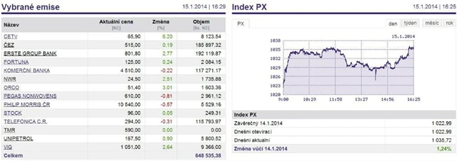 Index PX ve středu posílil o 1,24 % na 1 035,72 bodu.