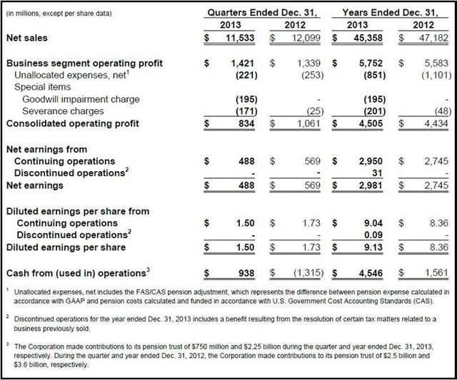 Zisk americké zbrojovky Lockheed Martin ve čtvrtém kvartále klesl o 14 %, v důsledku vládních škrtů, které společnosti snížily tržbě, proto vláda je její největší klient. Čistý zisk klesl na 488 milionů dolarů (1,50 USD na akcii) z 569 milionů (1,73 USD na akcii) v předchozím roce. Zisk očištěný o jednorázové náklady dosáhl 2,38 USD na akcii, čímž překonal odhad trhu (2,11 USD).
