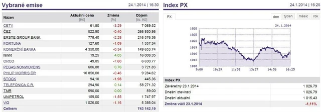 Index PX v pátek odepsal 1,11 % na 1 015,43 bodu.