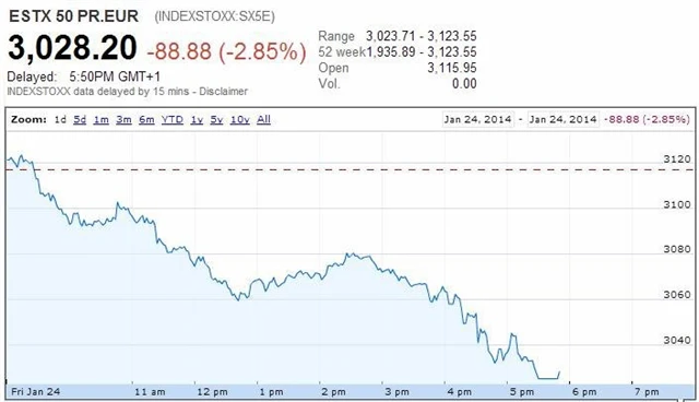 Západoevropské akcie utrpěly nejhlubší propad za posledních sedm měsíců a smazaly veškeré zisky, kterých dosáhly od začátku roku. Trh srazily obavy investorů ze situace v Latinské Americe, zejména v souvislosti s propadem argentinského pesa.