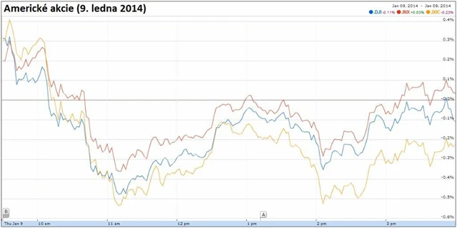 Americké akciové trhy do čtvrteční obchodní seance vstoupily s mírnými zisky, později ale přešly do ztrát. Příznivé údaje z amerického trhu práce nakonec přebila opatrnost před páteční klíčovou zprávou o prosincovém vývoji zaměstnanosti, která naznačí, zda prosincové rozhodnutí americké centrální banky zahájit omezování podpůrné měnové politiky bylo oprávněné.