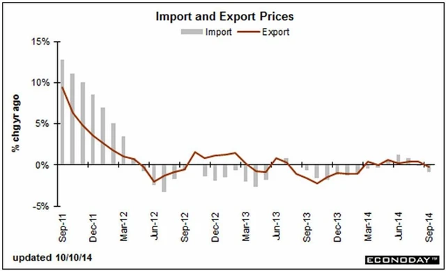 Index vývozních cen ve Spojených státech v meziročním i meziměsíčním srovnání klesl o 0,2 %. Čekal se meziměsíční pokles o 0,1 %. V srpnu se vývozní ceny meziročně snížily o 0,4 % a meziměsíčně klesly o 0,5 %. Dovozní ceny v srpnu meziročně klesly o 0,9 % a meziměsíčně se snížily o 0,5 %. Čekal se meziměsíční pokles o 0,7 %. V červenci dovozní ceny v meziročním srovnání klesly o 0,4 % a meziměsíčně se snížily o 0,6 % (revidováno z -0,9 %).